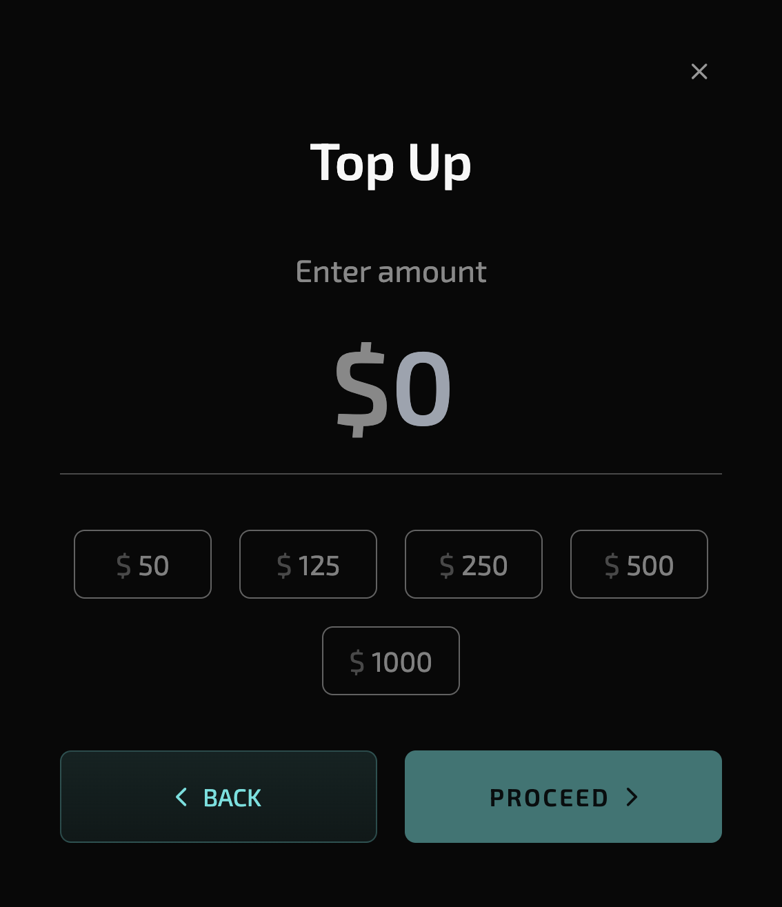 5. Choose the amount of testnet funds to receive and click **Proceed**.&#x20;